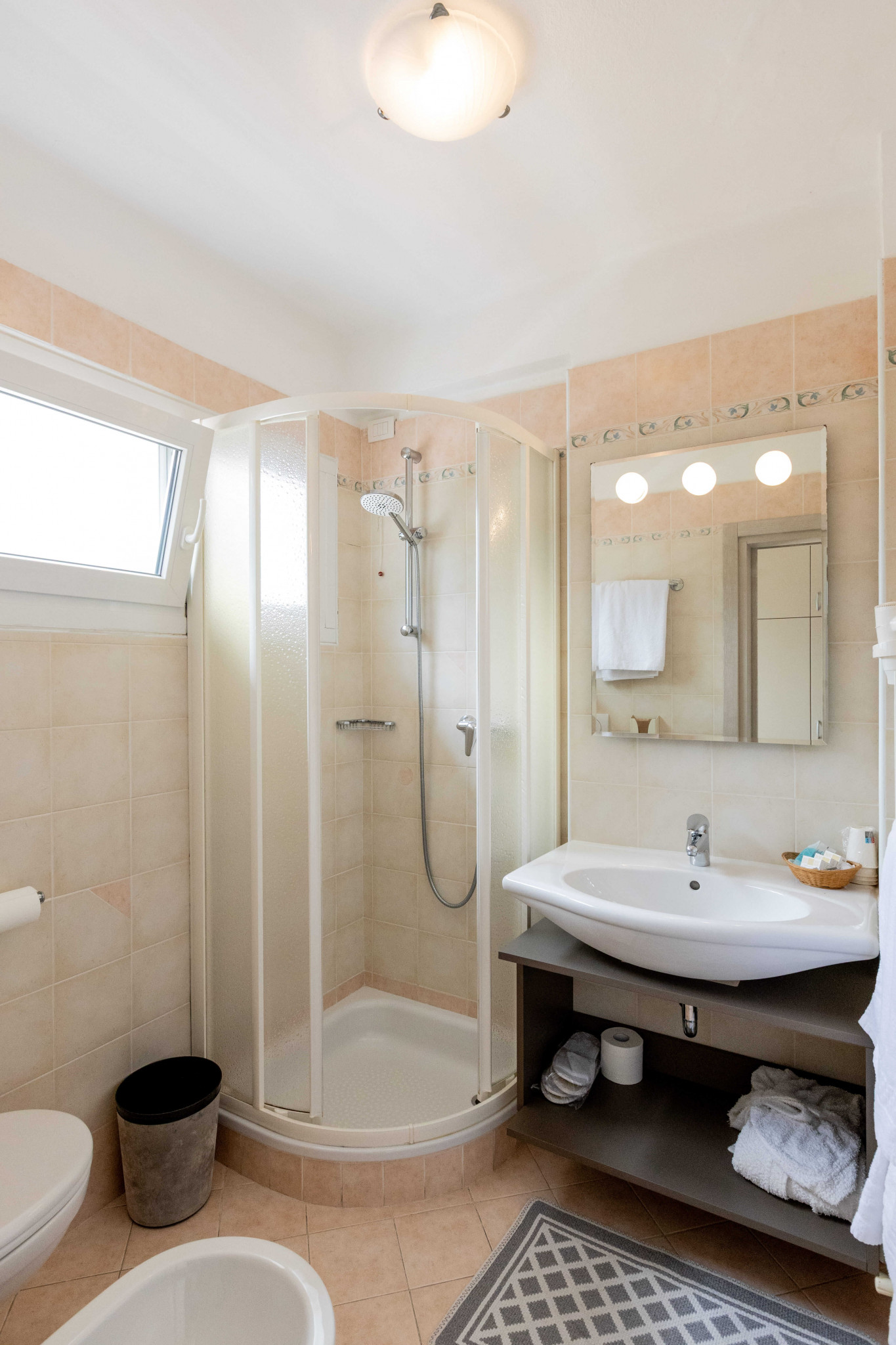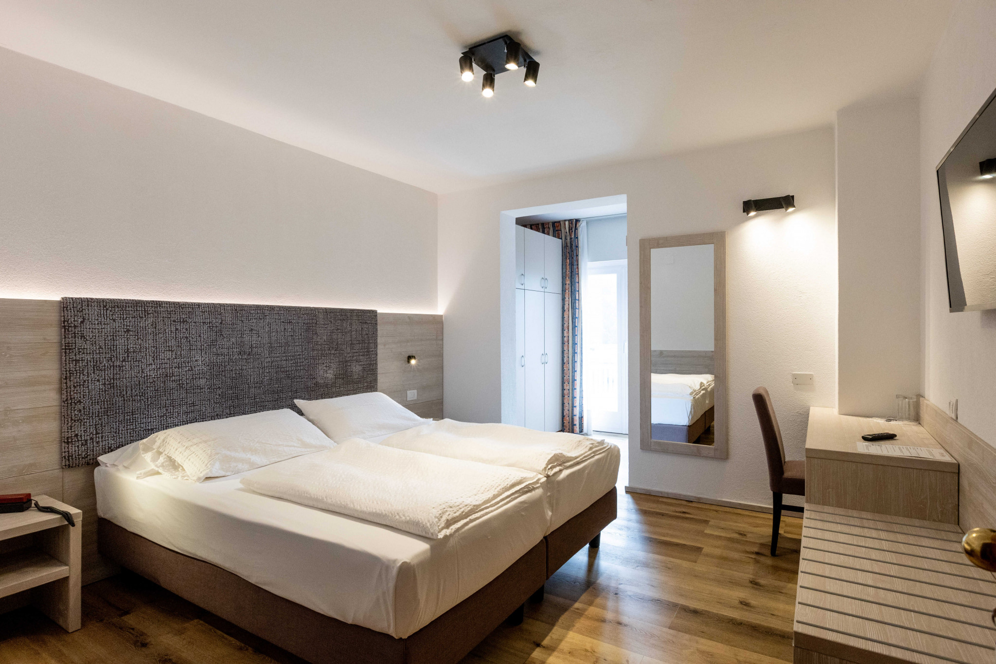 Featuring a balcony overlooking the Dolomites on the road side, satellite TV, safe, telephone, bathroom with shower and courtesy bathroom products.